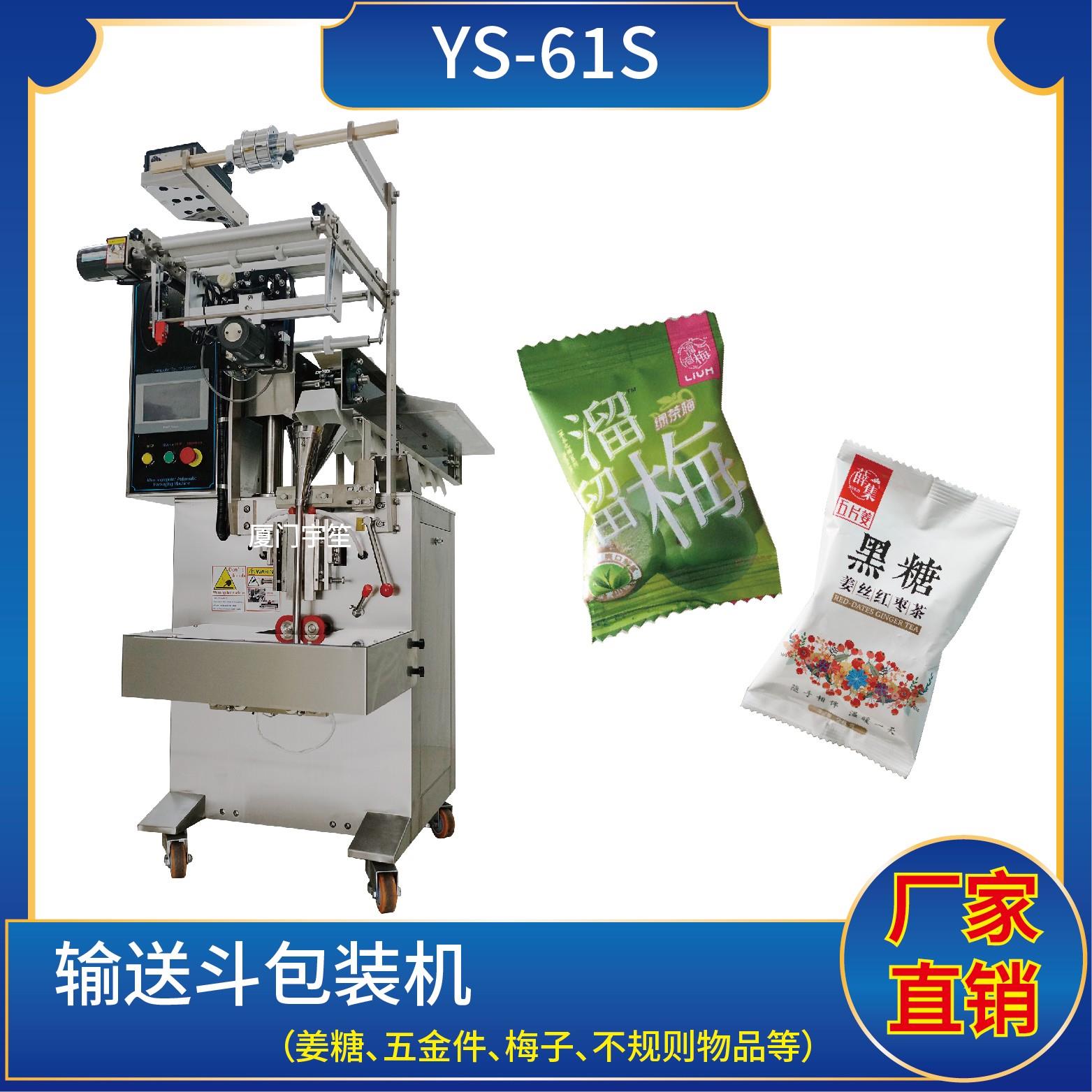YP-61BS 背封輸送斗包裝機特點1、適用于不規(guī)則物料的手工計量包裝。2、可自動完成制袋、計量、下料、封合、分切、計數(shù)、且可根據(jù)客戶要求配置打印批號等功能。3、觸摸屏操作,PLC 控制,驅(qū)動步進電機控制袋長,性能穩(wěn)定、調(diào)整方便、檢測準(zhǔn)確。智能式溫控儀,PID調(diào)節(jié),保證將溫度的誤差范圍控制在1℃以內(nèi)。4、包裝材料:聚…
