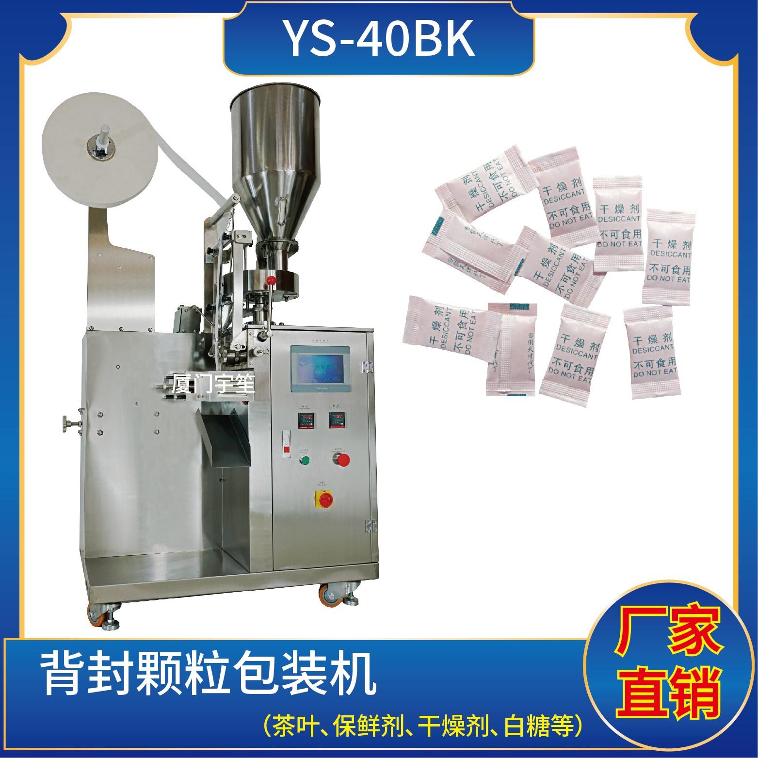 YS-40BK 背封顆粒自動包裝機特 點 1、適用于方便面行業(yè)湯包,干燥劑,沖劑,碎茶等小顆粒狀物品包裝。2、可自動完成制袋、計量、充填、封合、分切及計數等功能。3、包裝材料:茶葉濾紙、復合膜、無紡布。 封口方式:背封技術參數 計量范圍:10 - 40 g(0.6 ~ 33 ml)制袋尺寸:長 ( L ) : 40 - 110 mm …