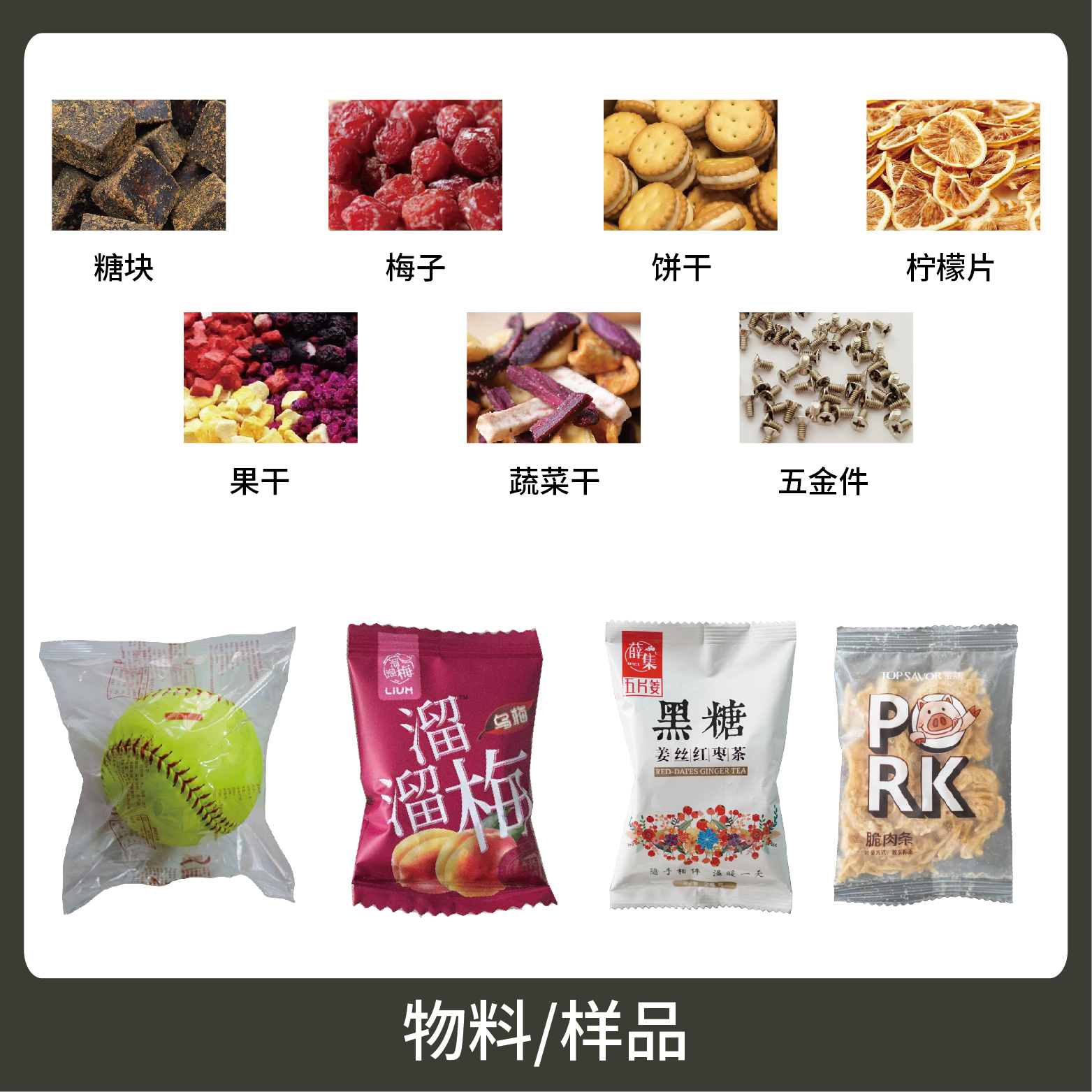 1、適用于不規(guī)則物料的手工計(jì)量包裝,如:球、芝麻丸、糖塊、梅子等。