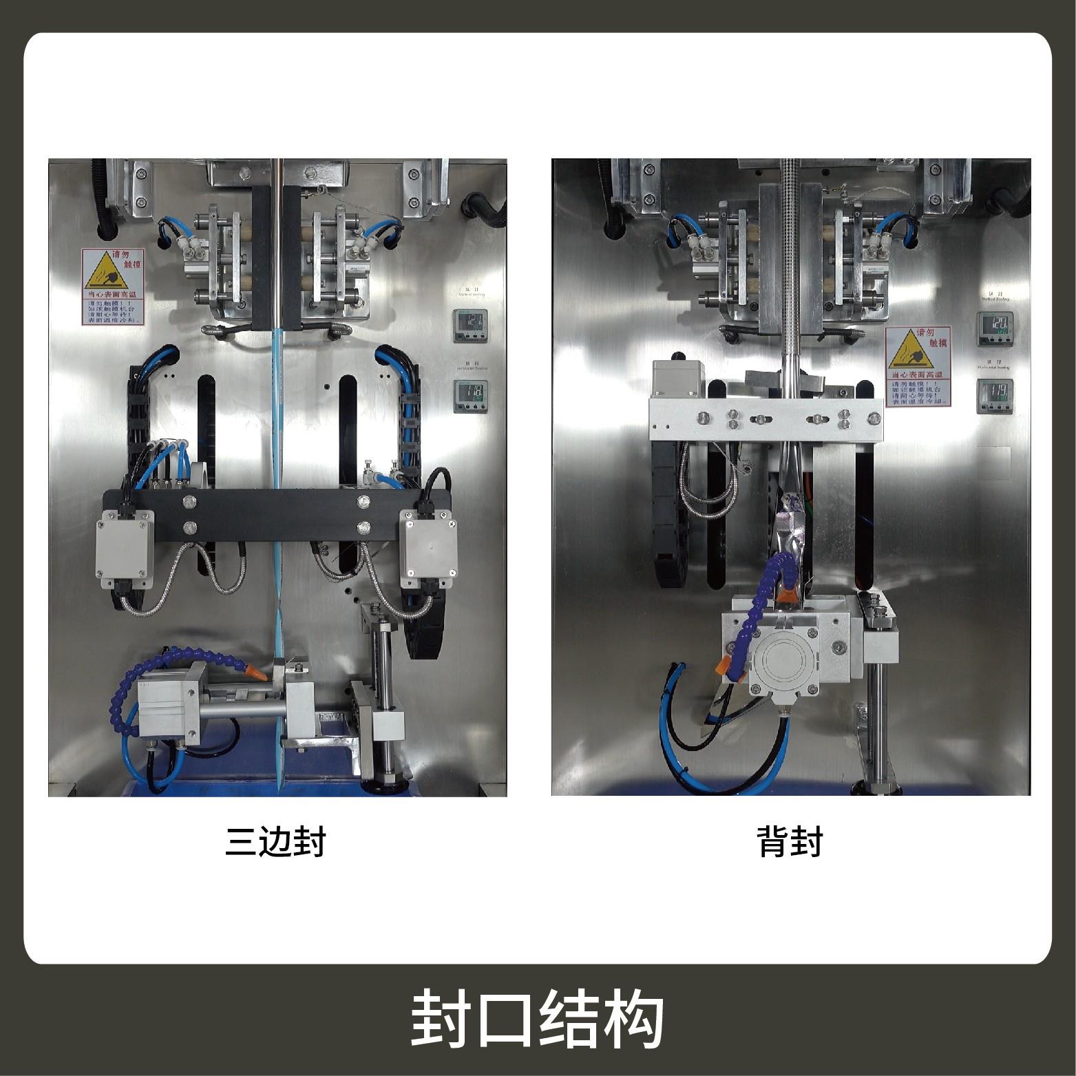 3、觸摸屏操作,PLC 控制,驅(qū)動(dòng)步進(jìn)電機(jī)控制袋長(zhǎng),性能穩(wěn)定、調(diào)整方便、檢測(cè)準(zhǔn)確。智能式溫控儀,PID調(diào)節(jié),保證將溫度的誤差范圍控制在1℃以內(nèi)。